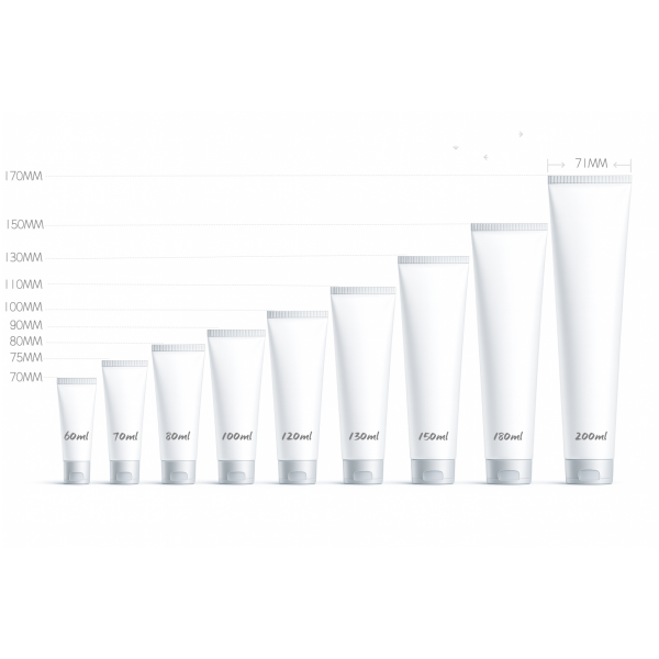 • Freedom in Appearance Design: Sizes (60-200ml), tube shapes (round, flat, irregular) and lengths can be tailored to create brand-specific recognition.
